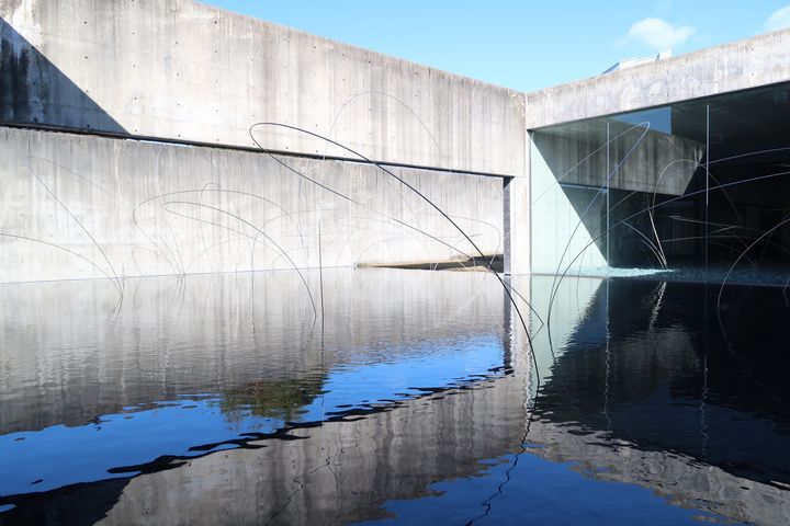 広場に戻り、水が流れるカスケードを見ると、茨城県南東部に広がる湖、霞ヶ浦を型どった形状をしていることがわかるなど、読み解くべき引用がどこまでも続く。