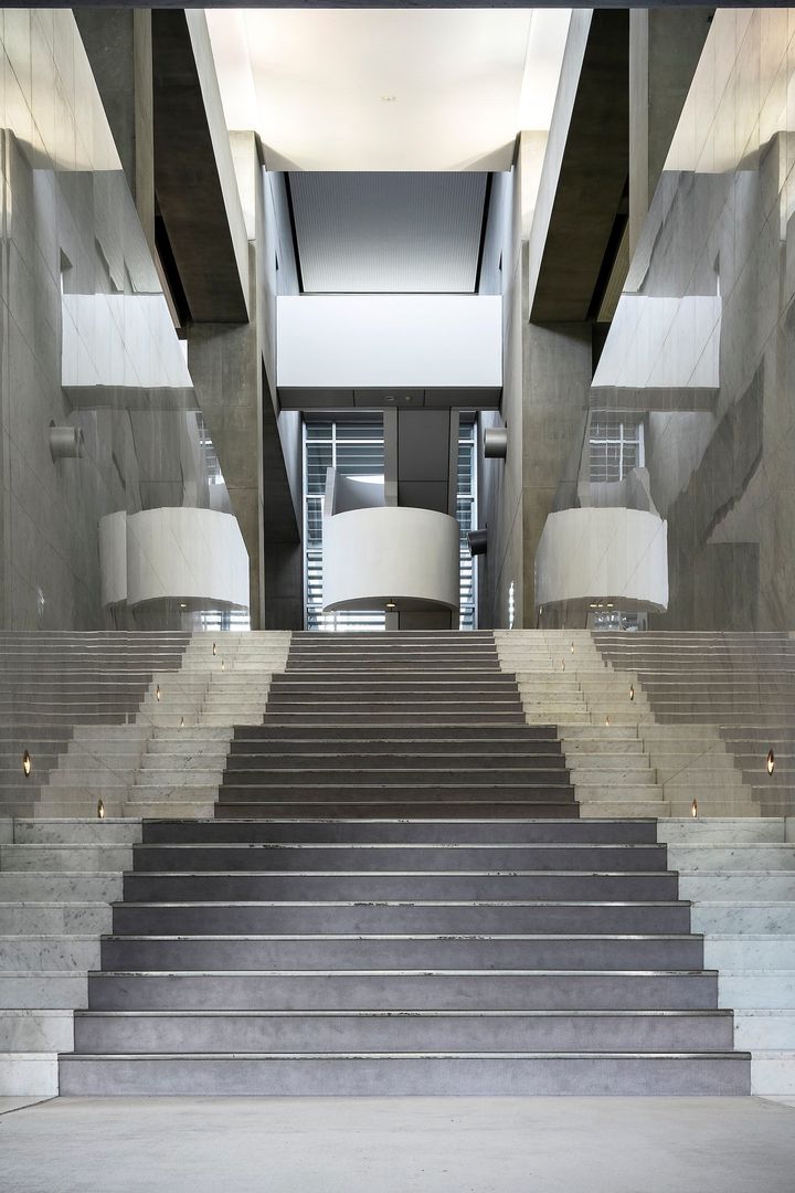 ビル全体を見渡すと、歴史的引用は、このほかにも。ホテルのファサードは、ギリシア神殿などに見られる3段構成を意識しており、ノバホール(写真)正面に見られる鋸状(きょじょう)の柱には、新古典主義のフランス人建築家、クロード・ニコラ・ルドゥーの影響を感じさせる。