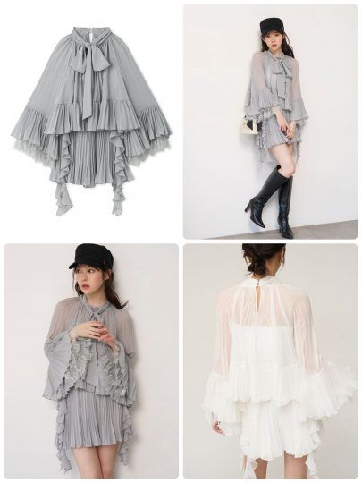 顔を包み込むような2段のラッフルカラーがポイント♡ それでいて前後V開きなので、デコルテラインをスッキリみせてくれます。