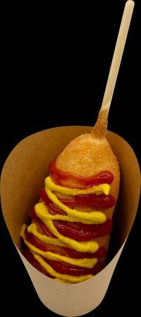 生地づくりから揚げまで、すべて手作りというアメリカンドッグ。外はカリッと、中はふんわりとした食感で、生地に合わせて開発されたこだわりのソーセージのうま味がたっぷりと堪能できます。ケチャップ&マスタードは鉄板ですが、甘いものが欲しいなぁという人にはホイップ&ストロベリーというチョイスもできます。