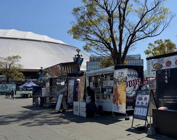 こちらのグルメストリートは、チケットを持っていない人も自由に利用することができるのがポイント。再入場OKのエリアなので、チケットを持っている人は、試合前はもちろん、試合途中でも楽しむことができますよ。