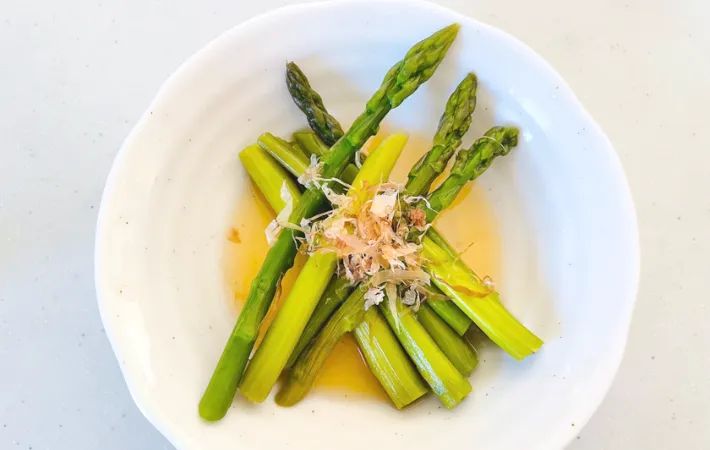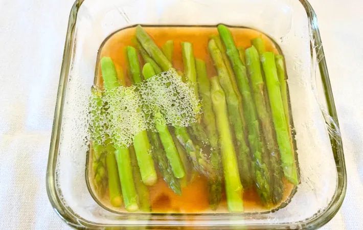 2. 材料たった3つ!「電子レンジで柔らかくなるの?」夫が驚いたアスパラ簡単副菜
