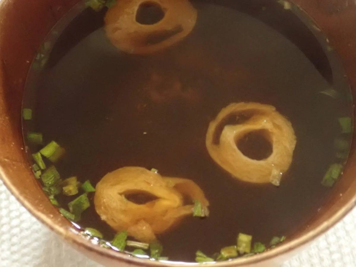 赤味噌の香ばしさがある、濃いめのみそ汁です。