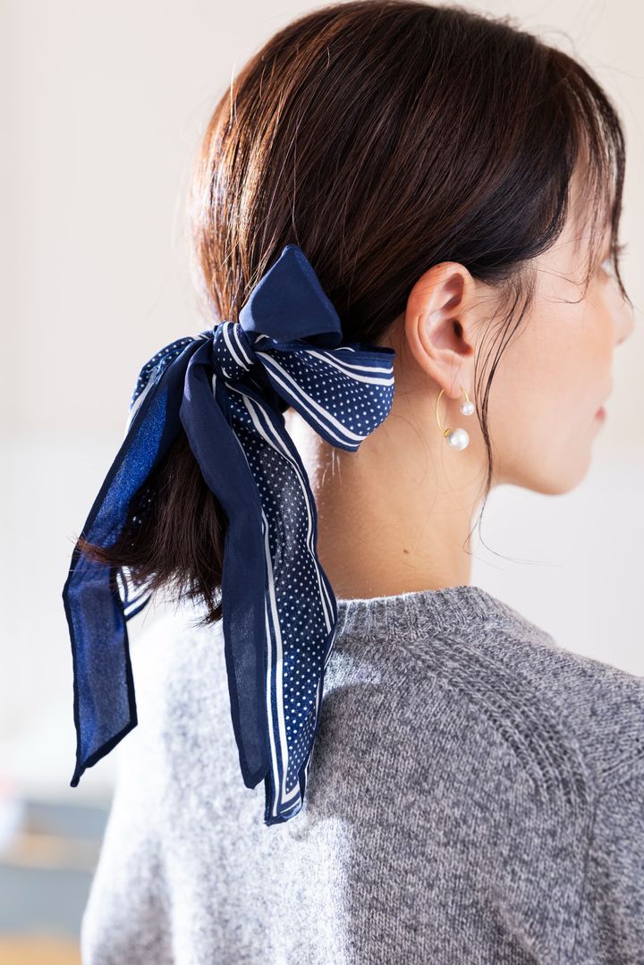 普通の蝶結びにするとピアノの発表会感が出るので、片結びや少し斜めにしてこなれ感を。