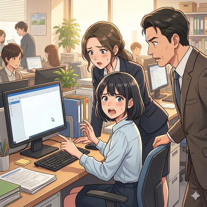 しんと静まり返ったオフィスに、上司の低く響く声が落ちました。血の気が引き、しどろもどろになる先輩。