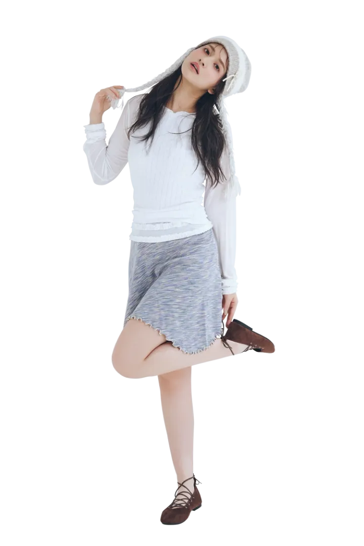 スカート 10,160円/MINJIENA(HANA SHOWROOM)カーデ ィガン 14,080円/lilLilly(lilLilly TOKYO)デニムパンツ 19,800円/rienda(バロックジャパンリミテッド)ベルト 1,649円/WEGO