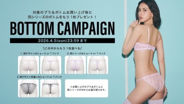 RAVIJOUR 2026 COLLECTION #4の発売を記念して、ノベルティキャンペーンを開催。 新作6シリーズのブラ&ボトムを購入毎に、さらに1枚お揃いボトムをプレゼント。