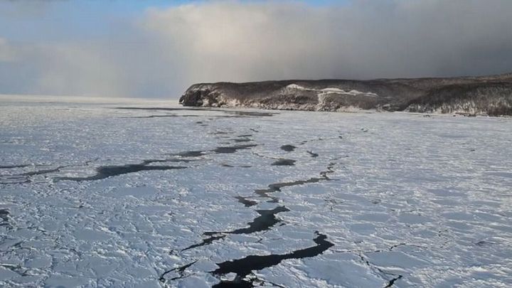 北海道・斜里町にたどりついた流氷です。