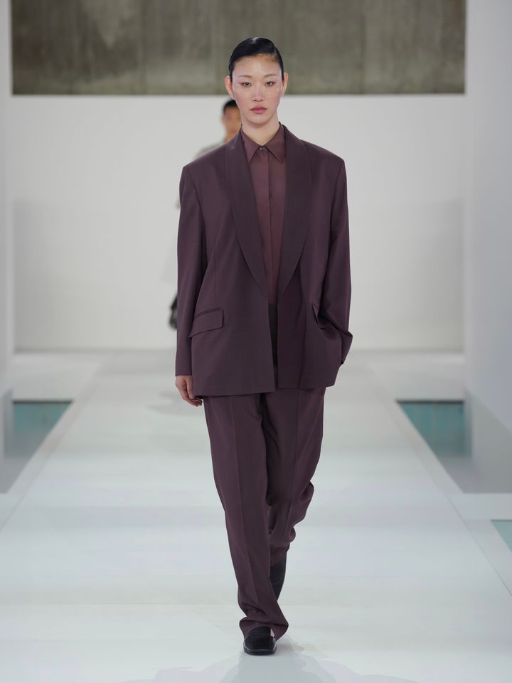 全40ルックを構成するのは、スレートグレー、温かみのあるブラウン、クリーム、ホワイトといった「コス(COS)」らしい知的なパレット。そこに深みのあるオックスブラッドレッドやブルーのアクセントが加わることで、タイムレスなスタイリングに現代的なリズムを刻んでいる。