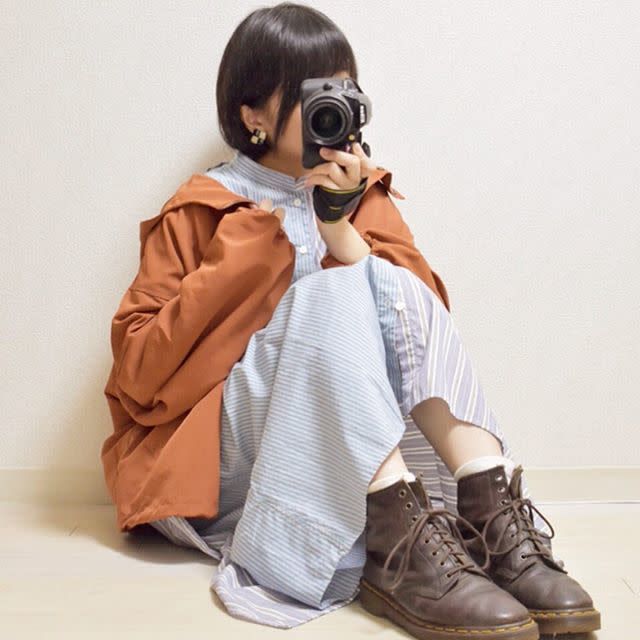 加えておすすめなのがワンピースやスカートファッションに合わせること。アウトドア感のあるパーカーがハズしとなり、コーデがこなれて見えます。