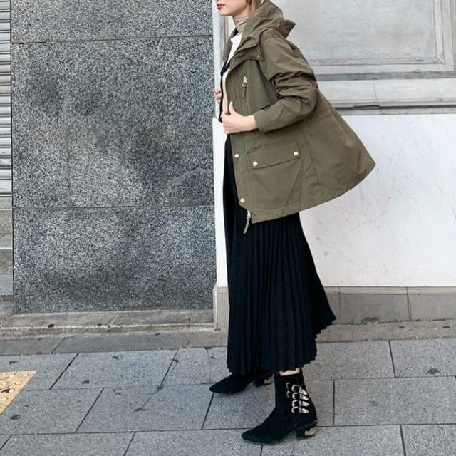 マウンテンパーカーは「ショートブーツ」とも相性バツグン。早春や秋にイチ押しのスタイリングです。