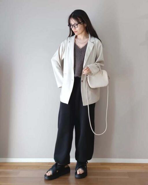 スウェットパンツ×ゆったりジャケットの春コーデ