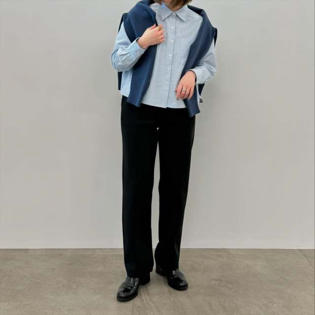 トップス1枚でよさそうな日は「襟付きシャツ」を合わせてみて。クリーンなシャツがスウェットパンツ独特の部屋着っぽさを解消し、大人カジュアルなコーデに。前を開けて着れば軽めのアウター代わりとしても使えます。