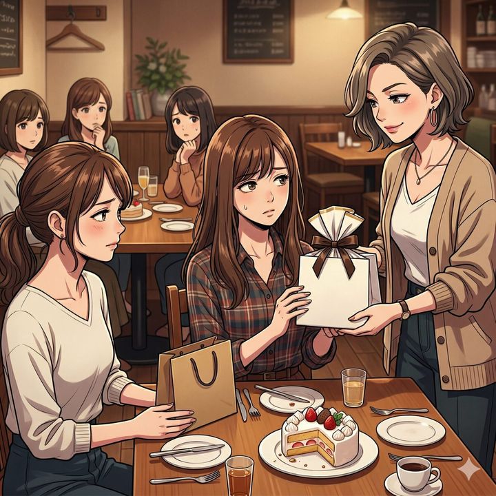 彼女が取り出したのは、みんなで用意したものとは別次元の高価なブランドものの紙袋でした。
