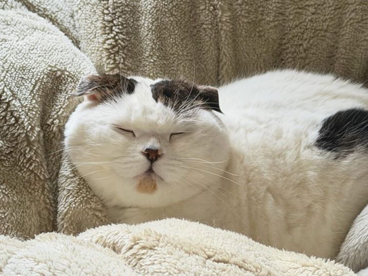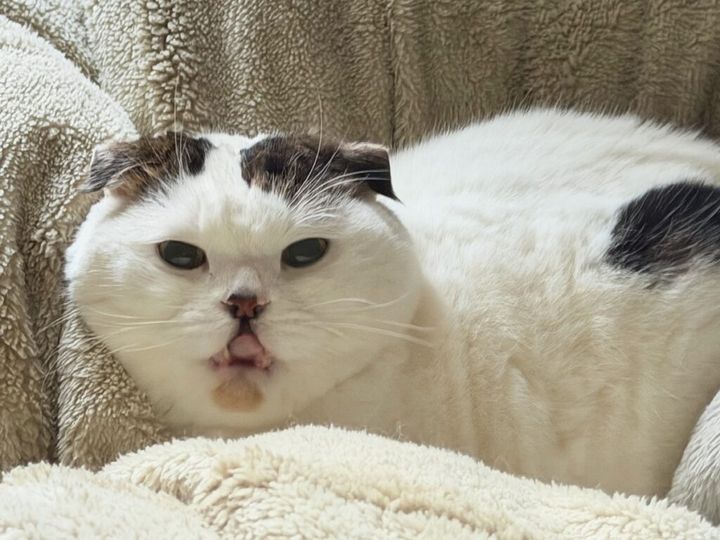 生まれは京都、育ちは大阪の6歳オス。いなほという名前は、飼い主が大好きなスピッツの曲名から。コーヒーこぼしちゃったみたいなアゴの茶色の斑点が、オレのチャームポイント。飼い主さんには、かなり用心深く繊細なタイプと言われてて、インターホンの音が鳴ると雲隠れし、ティッシュを抜く音にさえびっくりして跳び上がってしまうほど。本誌2021年7月号にて、わたなべとしふみさんによるいなほの紹介イラストを掲載しています。