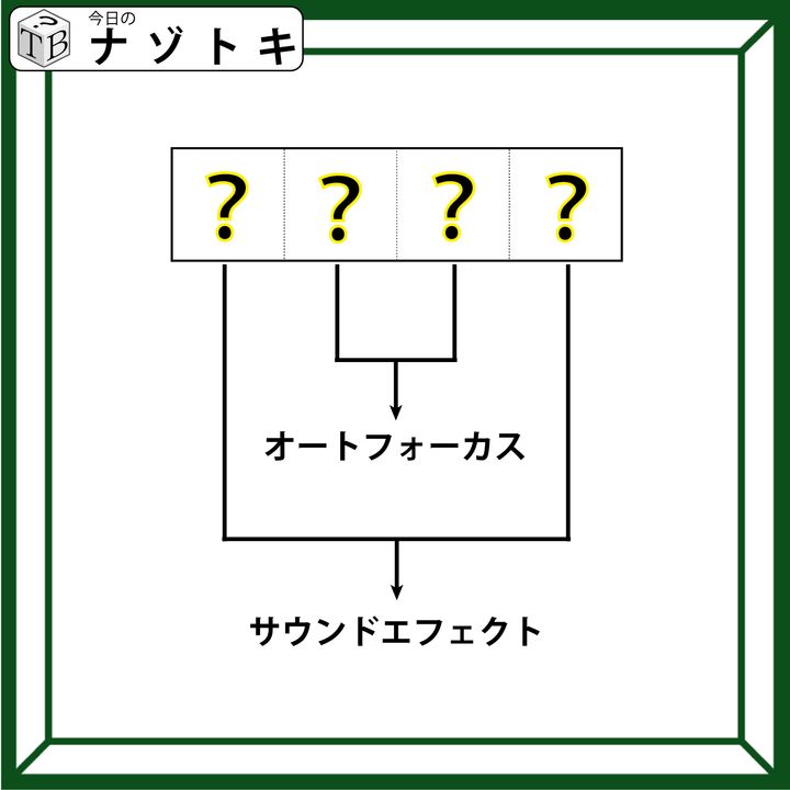 2. クイズです!「4文字の単語を導きましょう」オートフォーカスとサウンドエフェクトを別の言い方をすると……?【難易度LV3.・中辛】