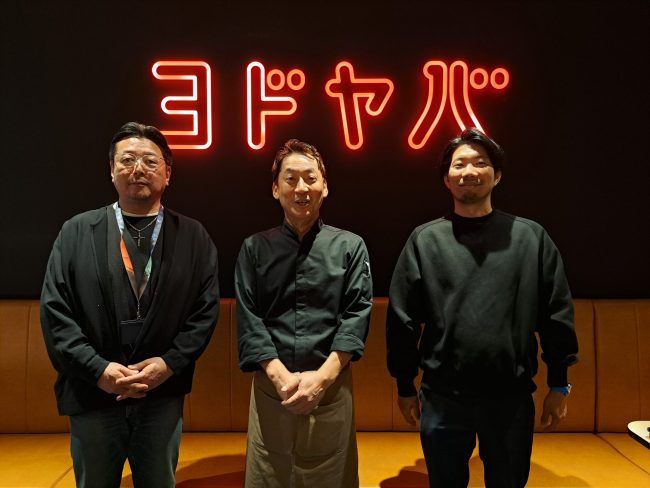 「ヨドヤバ」を立ち上げたのは、ホットファクトリー代表取締役社長の早田泰三さん、大和串Planning代表取締役の多々納大展さん、JCTN代表取締役で醸造家の川本祐嗣さんの3人(写真下・左から)。「店舗の形態にしばられず、もっと自由にお店を展開したい」という思いからオープンしたのだそう。