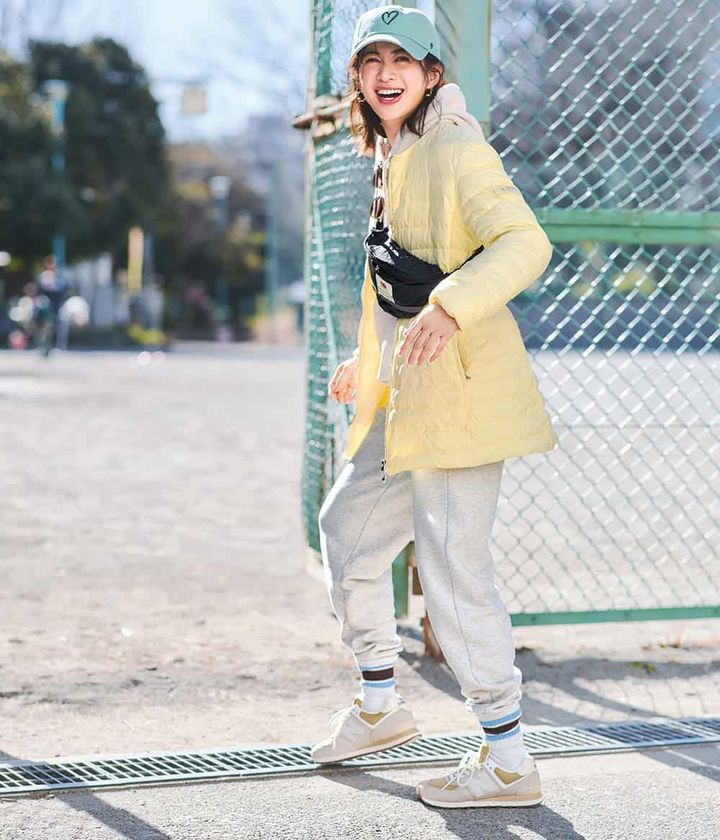 苦手意識のあるスポーティスタイルは、ペールトーンを選べば品よくまとまる。