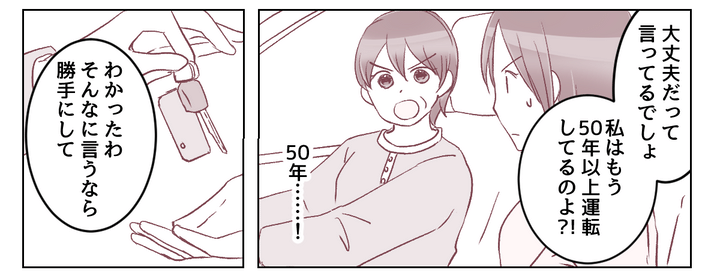 <義母の運転にヒヤッ!>運転の危うさ認めない義母「私は50年以上乗ってるのよ?」【まんが】