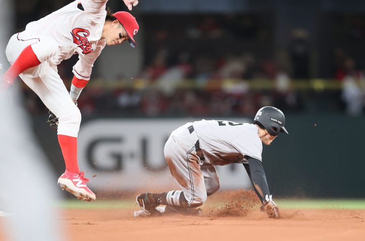 『1番・セカンド』でスタメン出場した浦田は、0-0の4回無死走者なしで迎えた第2打席、広島先発・森下暢仁が3ボール2ストライクから投じた8球目の外角のカットボールを見送り四球を選ぶと、続くキャベッジの2球目に今季2つ目の盗塁を決めた。