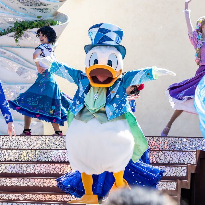 ドナルドダックは、ジュビリーブルーの華やかな装いでエンディングに参加します。