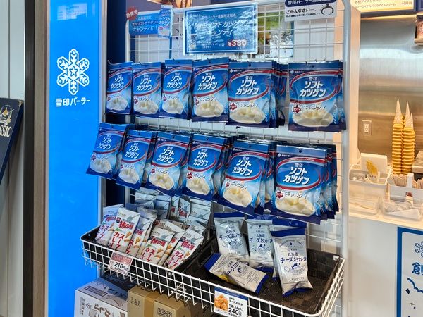 物販では道民に愛される「雪印ソフトカツゲン」のキャンディがラックにずらり!飛行機内で味わったり、お手土産に選んだりと重宝しそうです◎