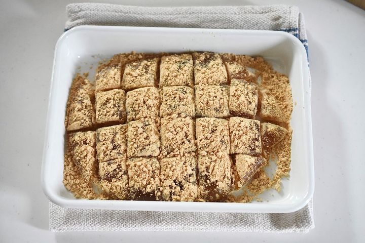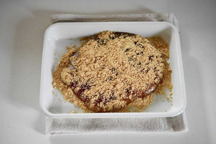 3. 1.のバットに流し入れ、上からもきな粉をまぶして粗熱を取る。