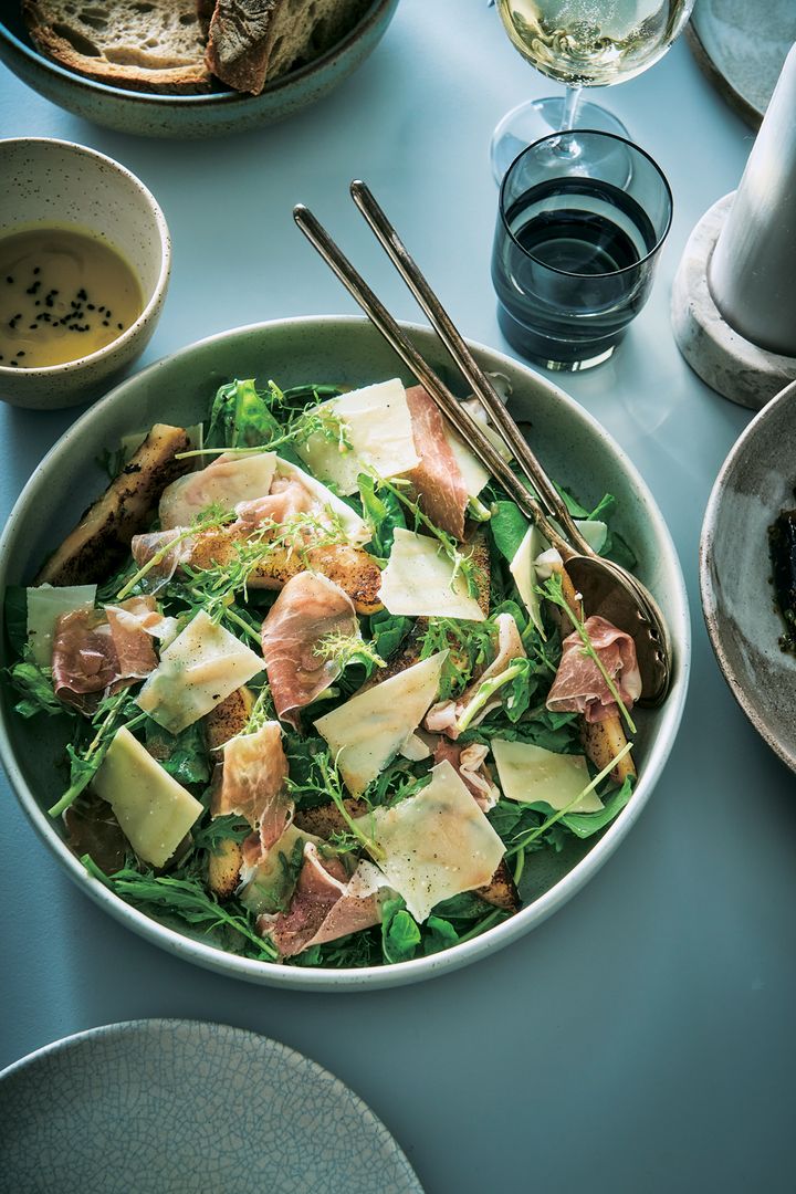 焼き洋梨、生ハム、ルコラのサラダ