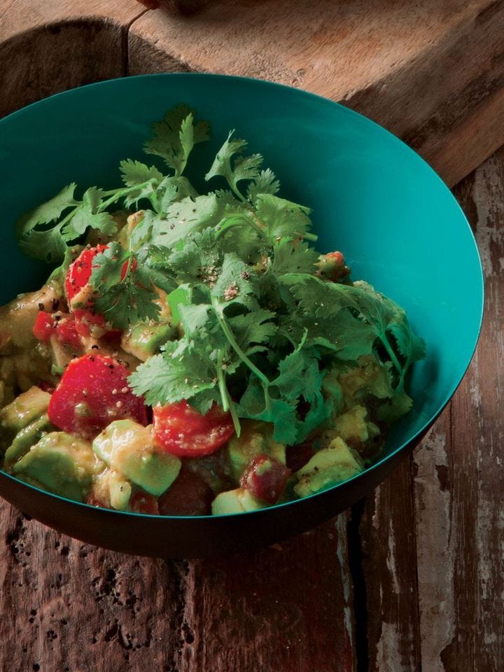 紺野シェフが教えるエスニックテイストのサラダは、切って混ぜるだけの簡単レシピ。サルサソースのピリ辛がアボカドのまろやかさを引き立てる。さっぱりとした一品で、肉料理の付け合わせやパンのお供にもぴったり。