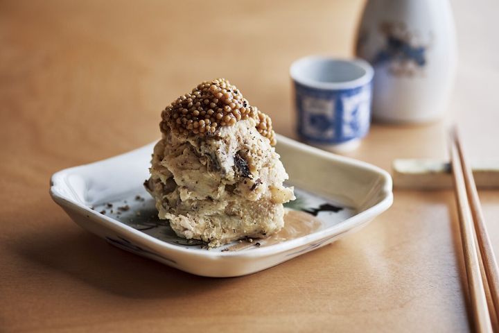 東京・代々木公園にある酒場「アルブル」の人気メニュー「サバポテトサラダ」は、こんがり焼いたさばの香ばしさに、マスタードの心地よい酸味と粒感が好相性。シンプルなビジュアルながら味わい深く、お酒を呼ぶ一品だ。