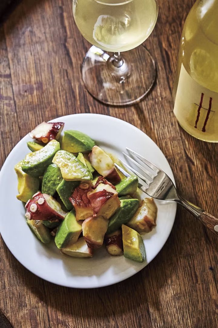 東京・代々木公園にあるワイン酒場「アヒルストア」の看板メニュー。タコとアボカドを同じ大きさにカットして、ワサビベースのドレッシングとあえるだけ。シンプルな調理法ながら、味わい深い一皿だ。ワインのお供に作るのもおすすめ。