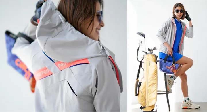 グレーはこの春もたくさん見かける人気の色。春の青空やみずみずしいフェアウェイのグリーンに引き立つ新しい着こなしにしたいなら、彩度の高いフレッシュなグレーに、涼感のあるブルー系やさわやかなビタミンイエローを合わせてみて。地味で落ち着いたグレーに凛としたインパクトと今どき感が加わり、春に似合う華やかなアスリートカジュアルに。派手な色は気恥ずかしいけれど、ときには鮮やかな色も試してみたい、そんな人にトライしてほしい配色です。