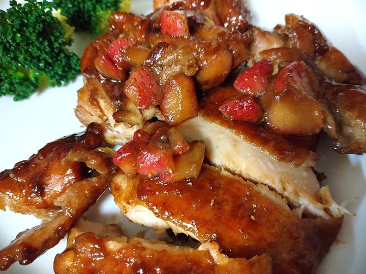3. 【鶏もも肉×いちご】意外すぎる「鶏のステーキ」作ろう!しょうゆ風味のいちごソース甘酸っぱ♡まさかの白米進む