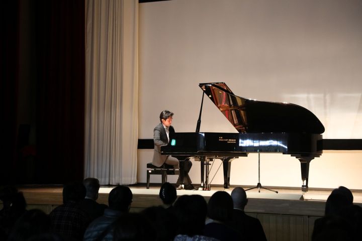 2022年に清泉女子大学講堂で開催した「ウクライナ医療支援チャリティーコンサート」で演奏をしている戸室玄さん。ショパン:バラード第1番、ラヴェル:ラ・ヴァルスなどを演奏されました。 Yoriko Saito