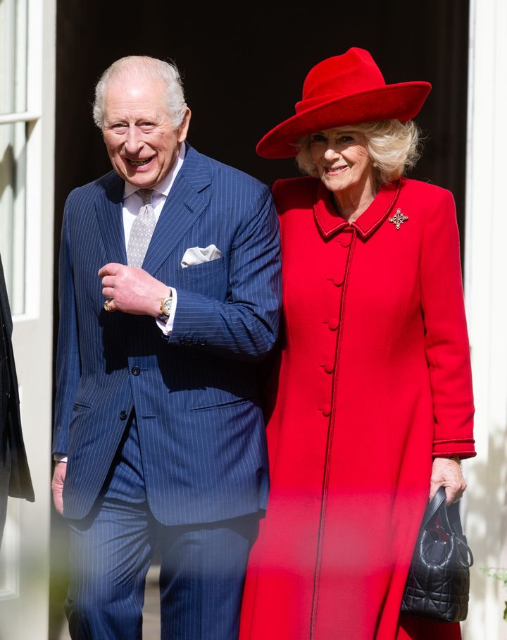 国王専用のベントレーに乗って教会へ向かった。カミラ王妃は鮮やかな赤が目を惹く装いで、エリザベス女王から受け継いだブローチをポイントにしていた。