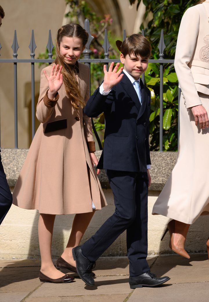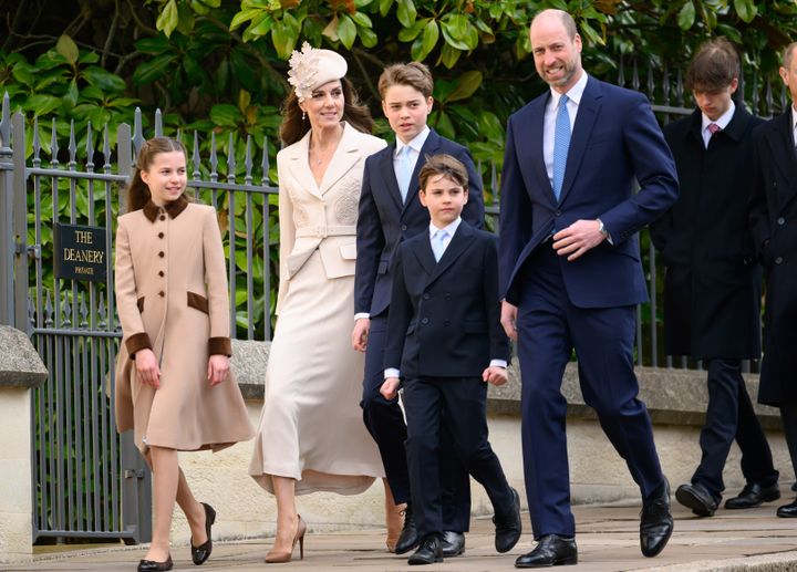 この日は強風が吹く中、連れ立ってウィンザー城へと歩みを進めた。城に戻った後は、英国の多くの家庭と同じように、伝統的なロースト・ラムの昼食を囲んで家族団らんの時間を楽しんだのだとか。