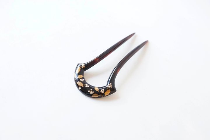かづら清老舗 本べっ甲 純金蒔絵螺鈿かんざし ガマズミ 白実 ¥71,500