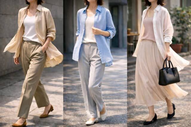 シャツコーデは色の選び方でも印象が変わります。淡い色だけでまとめると柔らかく仕上がる一方で、ぼやけて見えることも。