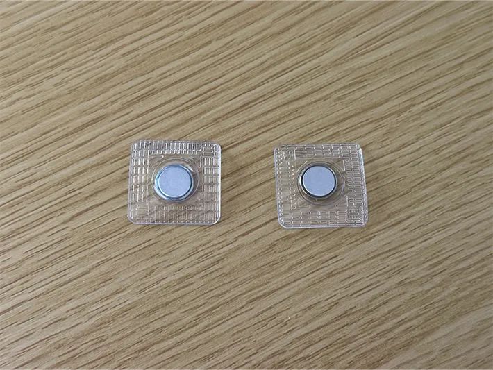 『隠しマグネット』は本来、革や布の内側に固定して使用することを前提とした、縫いつけタイプのマグネットホック。