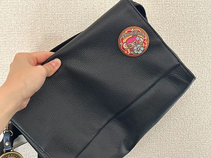 また、穴を開けることを想定されていない素材でもつけられるのが魅力。ピンで刺すのがはばかられる革や合皮などの素材のバッグにも、手軽につけることができますよ。