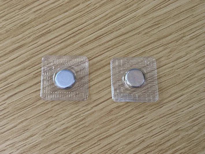 服やバッグの布部分を挟むよう、また、マグネットの裏同士が合わさるようにつければ完了です!