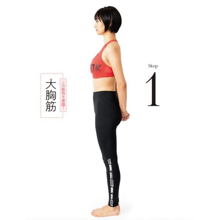 両手で押し合う動きで大胸筋を鍛え、たるんだバストをアップ!