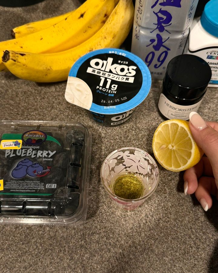 食事面でも、必ず温かいものから食べるようにしています。これ本当に大事!朝ごはんはヨーグルトや果物を食べることが多いのですが、すぐに食べるのではなく、温かい飲み物を飲んでから朝ごはんタイムに入ります。