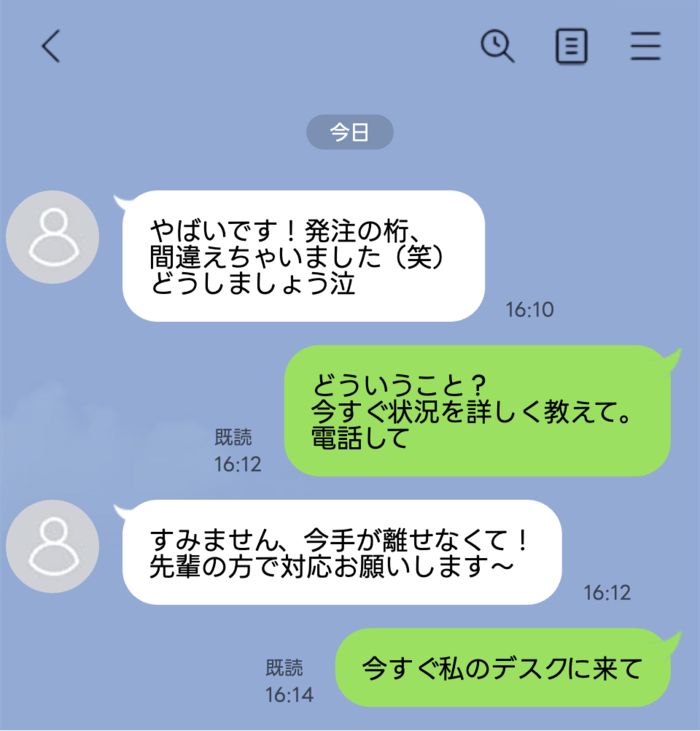 3. 「発注の桁、間違えちゃいました(笑)どうしましょう泣」重大ミスをメッセージで済ます後輩。私が怒りを通り越して見せた「プロの背中」