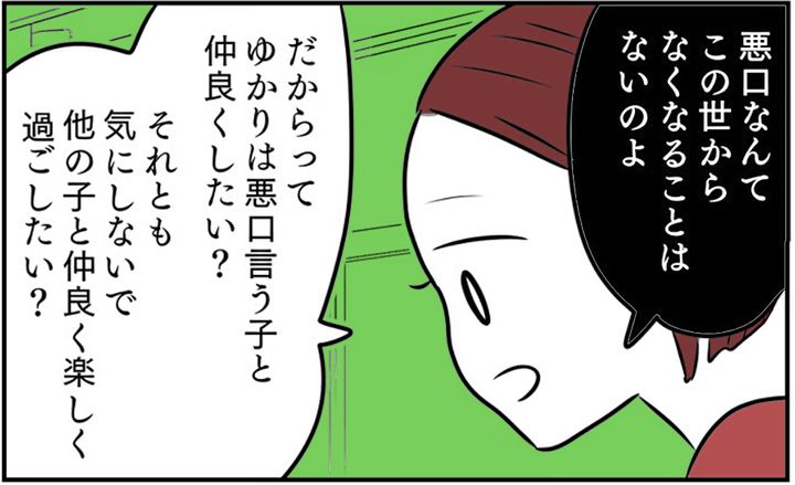 その場にいない人の悪口を言う人は、大人でも子どもでもいるものでしょう。身近にそんな人がいたら、どうやって付き合っていくのか……。コメントを返してくれたママたち自身も学生時代や職場での人間関係のなかで、さまざまな試行錯誤をして自分なりの折り合いの付け方を身につけてきたのではないでしょうか。本当は悪口を言う子のほうが変わるべきでしょう。しかし他人を変えるのはなかなか難しいものです。それよりも自分が嫌な人への対処法を身につけていくほうが早い。ママたちはその方法をアドバイスしてくれました。