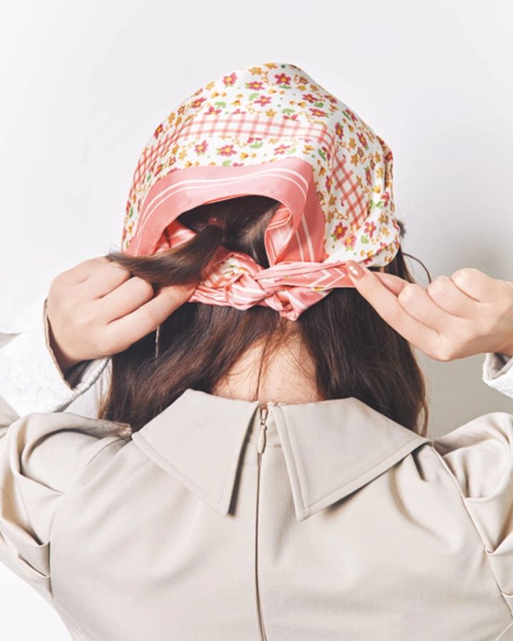 3. 春の定番コーデにもぴったり!今っぽアプデが叶う【レトロ柄スカーフ×BOHOヘア】の作り方