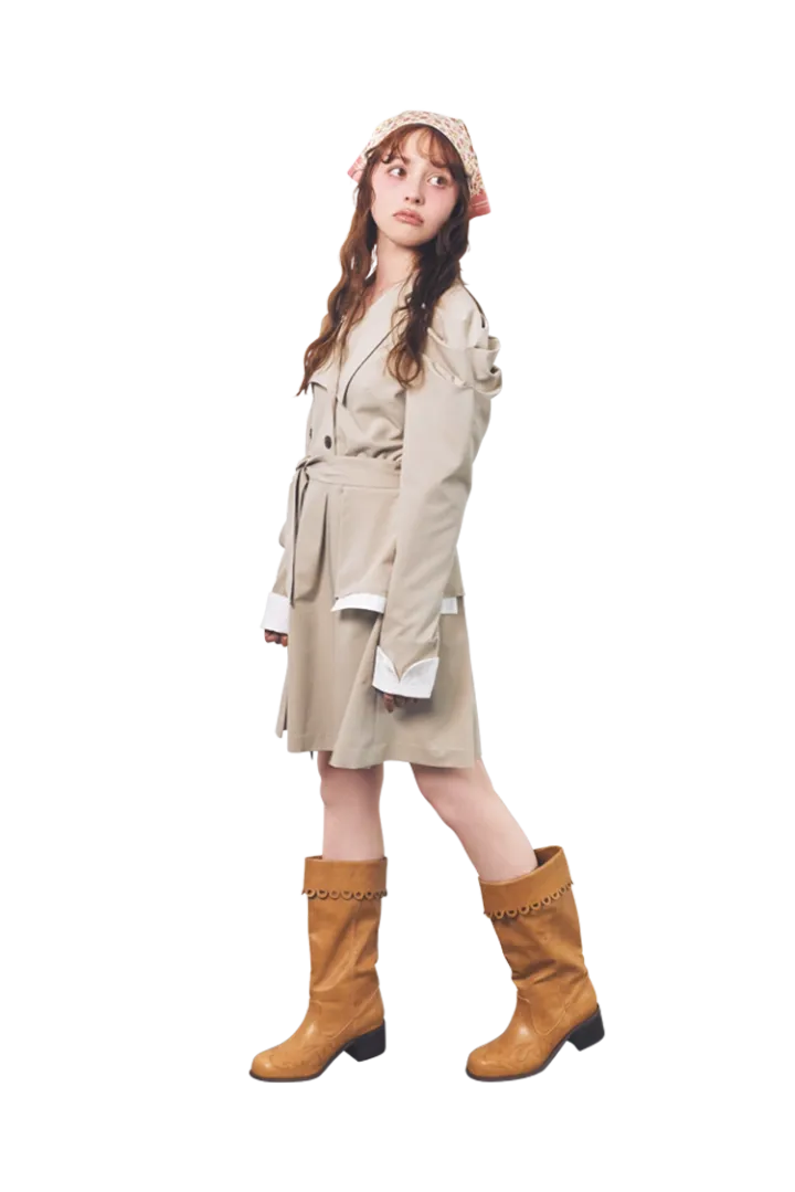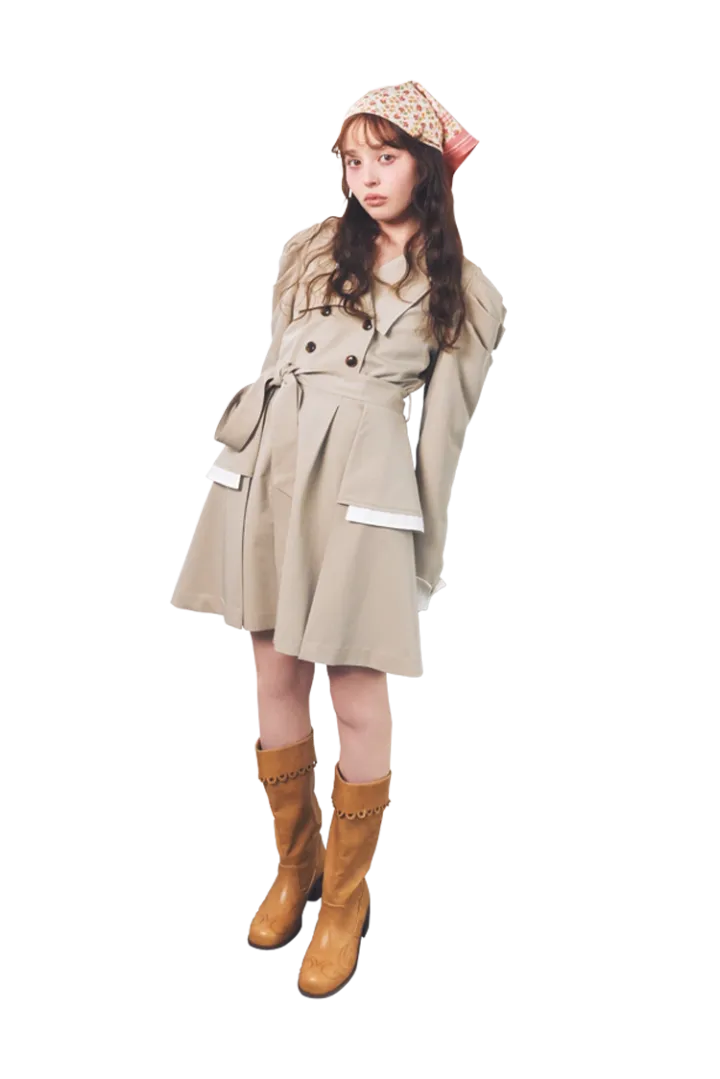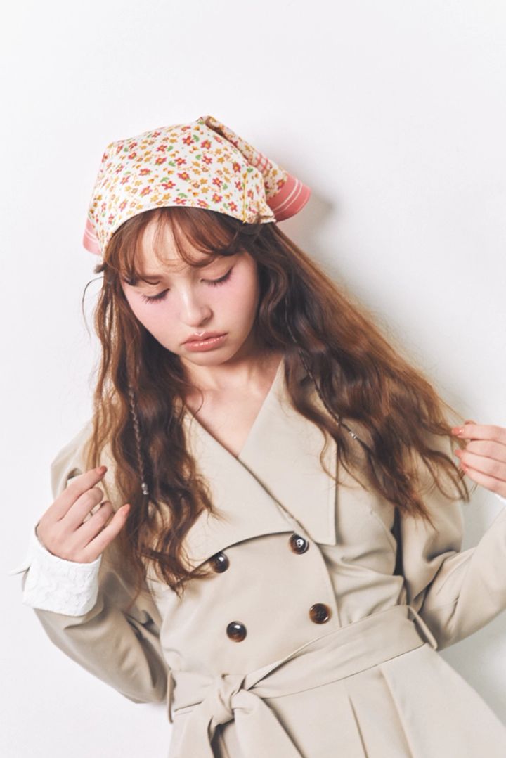 春の定番トレンチスタイルも、スカーフをぐるりと頭に巻くだけで印象が激変!