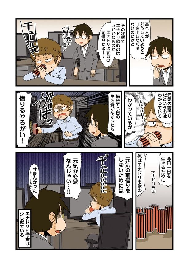 3. 疲れた状態でエナドリを飲む同僚を止めるも…元気を前借りするエナドリは“アレ”に似ているらしい/理系の人々【再連載】