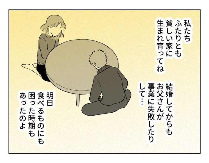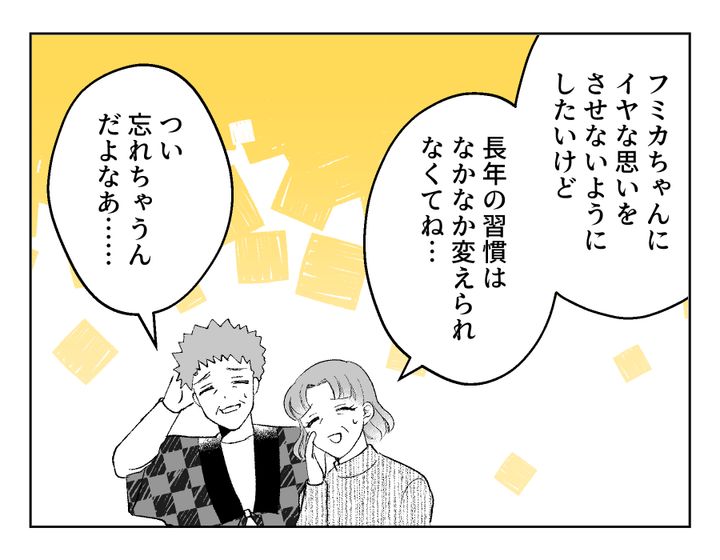 なるほど……。義両親のちょっと過剰ともいえる節約思考には、こんな過去があったのですね。確かに「明日食べるものにも困る時期」を経験した人からすれば、他人からしたらゴミだと思うようなものでも、「捨てるのがもったいない!」という気持ちになることもあるのかもしれません。この話を聞いたフミカさんは、「こんな過去があったのに、自分の価値観ばかり押し付けすぎていた」と反省したようです。