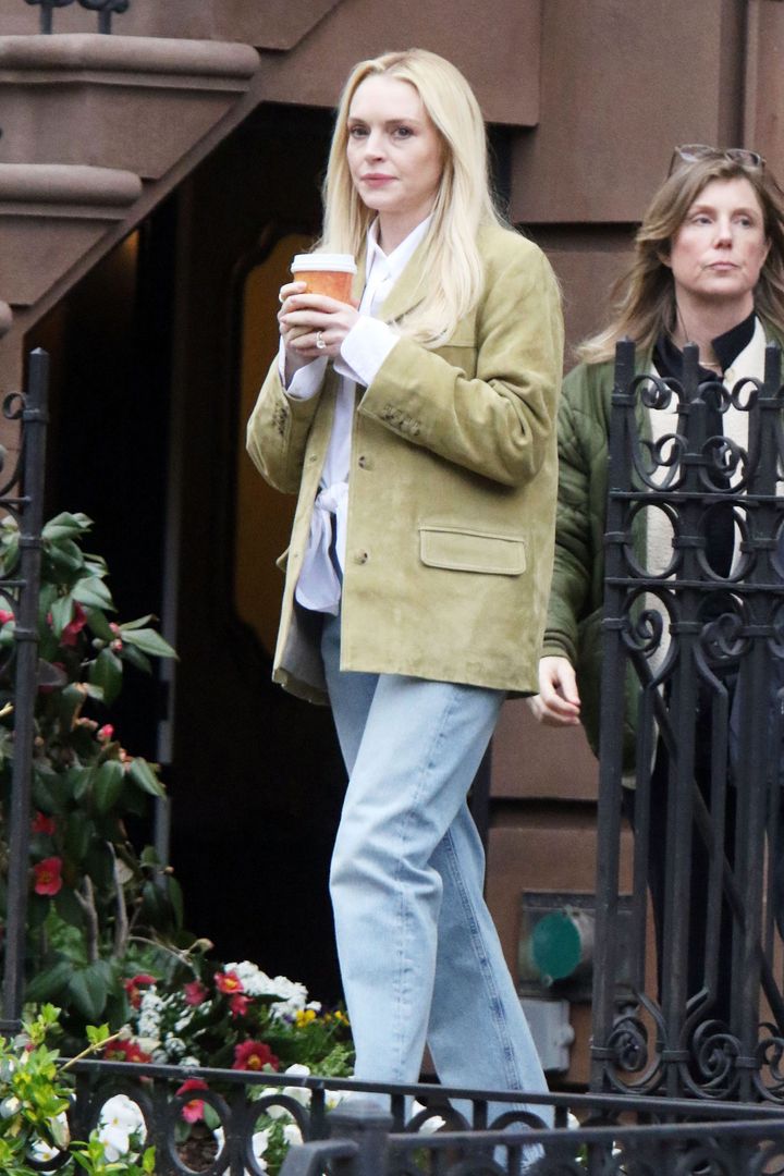 現地時間2026年4月2日(木)、ニューヨークでパパラッチされたリンジー。この日は自身が主要キャストを務めるHulu限定シリーズ「Count My Lies(原題)」の撮影が行われていて、リンジーはグリーンのジャケットにデニムパンツという格好でセットに登場。共演するシェイリーン・ウッドリーとハグを交わす瞬間も捉えられた。